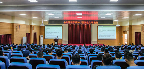 9月18日,在公共管理学院2017级新生入学教育大会上,公共管理学院院长徐文俊教授给新生讲授了大学第一堂思想政治课。