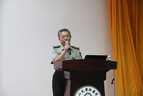海军陆战学院周月英教授为同学们讲解了国防教育的意义。周教授指出,国防教育是培养国防后备人才的重要方式,而大学生是后备力量的生力军,承担着非常重要的时代责任,为了培养大家的国防素质,军训的方式也在不断创新。