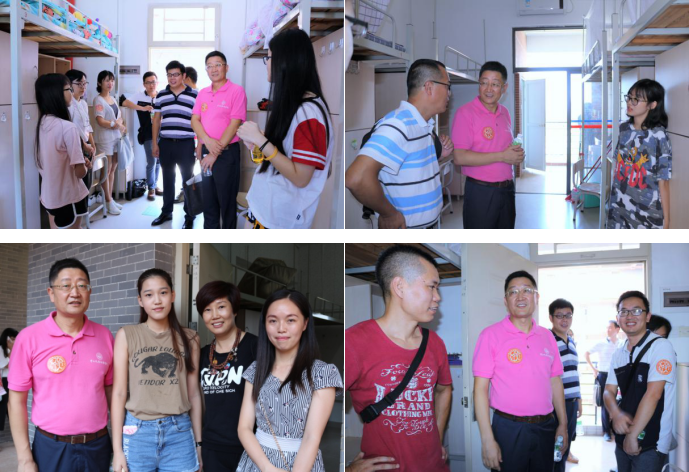 蓝永金副校长、副书记,黄国龙副院长,方建国副院长及新生辅导员走访新生宿舍