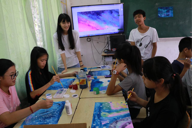 队员陈敏仪教导同学调色