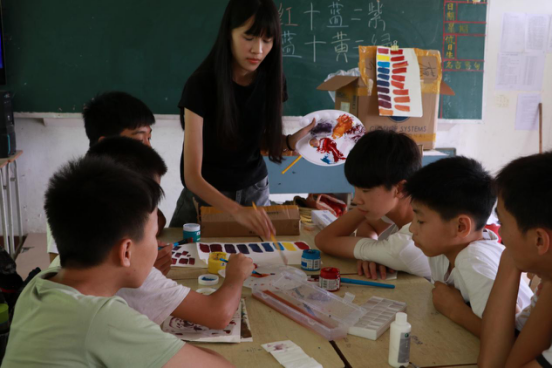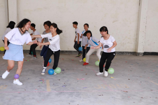 在短暂的休息后,便开始了下午的课程。水彩画课,同学们在被水彩颜料混合变化中找到乐趣,在光怪陆离中不亦乐乎;这一天里最后的课程是体育课,学生与微光团队利用气球做游戏,踩气球,拍气球,笑声比气球的爆破声还要清脆,在一片欢声笑语中微光团队的第一天的课程宣告结束。