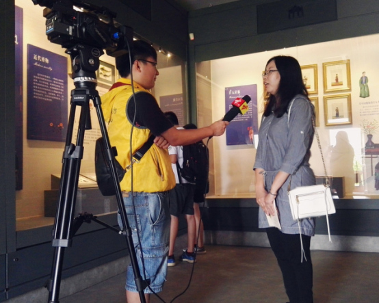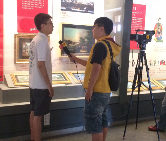 在参观的过程中,团队有幸接到了广东电视台《今日关注》栏目组的采访。我们向栏目组介绍了中山大学新华学院暑期三下乡的实践活动以及画说岭南实践队的研究主题——蓪草画与“一带一路”间的关系的调研,并表达了我们希望蓪草文化能更好地传播和传承的意愿。