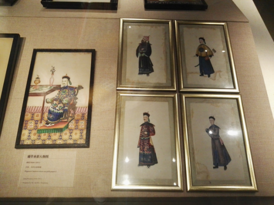 队员们来到省博查找蓪草画的相关资料。有赖前期做的大量调研工作,队员们迅速的找到了广东近代对外贸易的文物展示区,并在外销画展区中我们顺利找到了调研的主角——蓪草画。