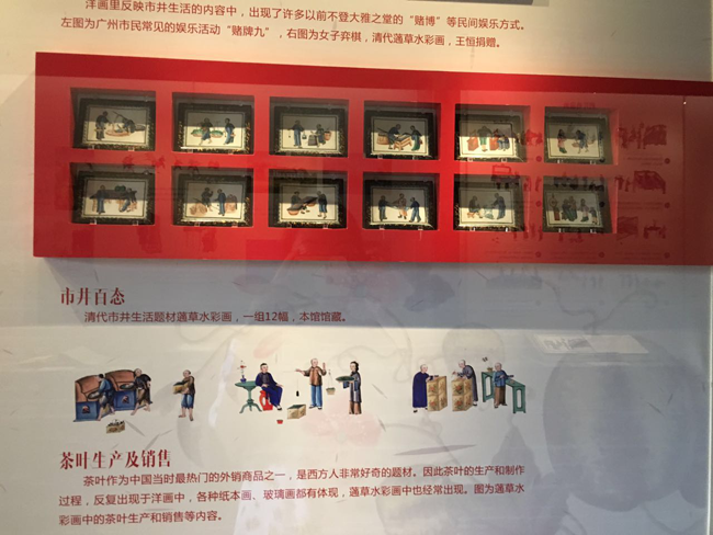 团队来到了十三行博物馆,欣赏更多的蓪草画,搜集更多有关蓪草画的资料。广州十三行,在十九世纪时期曾是清政府唯一对外通商的地方,因此占据了中国海上丝绸之路的重要地位。当年蓪草画也是从这里流传出去的。