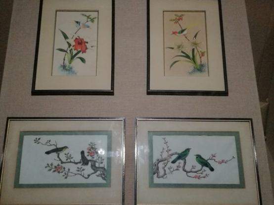 广州市博物馆,也叫镇海楼,这里收藏着大量具有广府特色奇珍异品,犹如一处藏匿于越秀山中的文化藏宝阁,等待着世人们发觉蕴藏其中的艺术瑰宝。进入沉重的木门,踏上蜿蜒的阶梯,我们在琳琅满目的藏品中,不断寻觅着蓪草画的身影。终于在三楼,我们看到了两幅躲藏在角落的蓪草画。泛黄的纸面,似乎在向我们诉说着那段离乡漂泊的沧桑岁月。