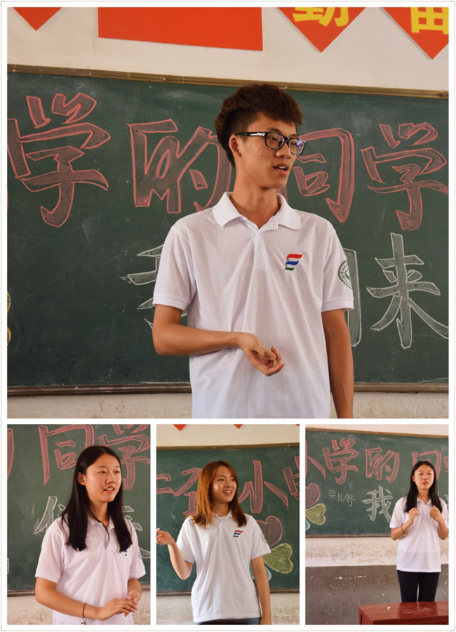 座谈会开始,邹校长首先进行讲话,他对梦享蓝天社会实践队的到来表示强烈的欢迎,并向队员介绍了当地的一些情况,表示将会大力支持此次的三下乡活动,他同时强调,在活动开展期间要特别注意安全问题。接着,郭校长感谢郑银珊老师带领同学们来到牛颈村开展三下乡活动,认为此举值得鼓励,并希望队员们能够通过此次活动,从受教育者转变成教育者,把理论知识用于实践,从而得到思想上的提高。