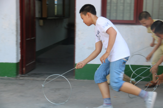 下午的趣味语文课上,我们先是玩起了“成语接龙”和“你画我猜”的小游戏,寓教于乐。小朋友们不仅能学习到新的词,还能通过游戏的方式提高孩子们学习的兴趣和加深词汇积累。上了一天的课,当然要劳逸结合,特意给小朋友们准备了体育课。队员和孩子们一起玩丢沙包和推铁环等传统游戏。