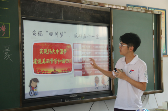 最后一天我们义教的主题是“中国梦,我的梦”,队员们给孩子们分享了这些年祖国母亲在建设发展中取得的伟大成就,目的是增强孩子们对伟大祖国的认同感、归属感和自豪感;又引导孩子们大胆说出自己的梦想,鼓励孩子们要有乘长风破万里浪的拼搏精神,坚持梦想,砥砺前行。