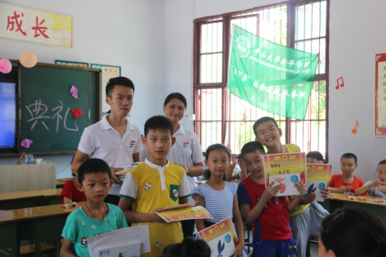 在随后举行的结课典礼上,队员们逐一讲述这几天义教的感想,孩子们一起合唱了《小小少年》,孩子们给父母献上了一首《时间都去哪儿》,孩子们表演了父母年代经典歌曲《爱》的手语版,变化着的手势,用另一种方式,表达了对父母的爱和感恩之情。队员们给孩子们颁发了奖状,对他们的优秀表现进行鼓励。