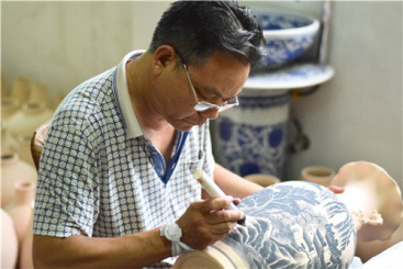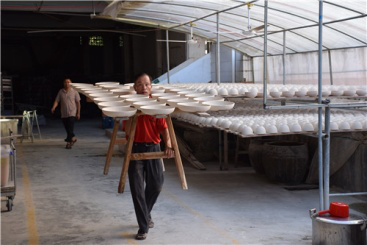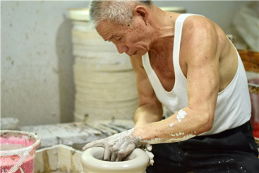 为使调研证据更充分,在大埔县陶瓷行业管理办公室丘工程师的推荐下,队员们前往了当地80%以上劳动力从事陶瓷生产的桃源镇进行调研,受访企业有:以生产工艺瓷为主的富源陶瓷工艺厂,以釉下手绘青花闻名的昌隆陶瓷工艺厂,出口比例达98%、坐拥环形纯电窑的欣红陶瓷股份有限公司,以日用陶瓷为主,正在筹备上市的吉玉陶瓷股份有限公司。其中,富大陶瓷文化发展有限公司总经理省级非物质文化遗产传承人黄福传先生道出一句令人感慨不已的话:“生产力要改革,产业要转型,但传统的技艺绝不能丢。”