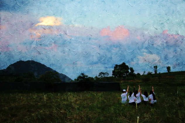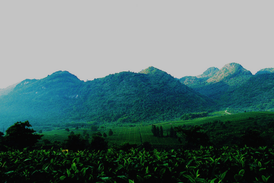 在我们刚刚回到住宿地的时候,太阳早已落下。朦朦胧胧的天空开始被绵绵的云层所渐渐笼罩,渐渐下起了我们来到茶谷的第一场雨。灰暗之中,我们看到了如山水画一般的崇山峻岭。