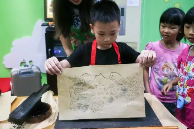 课堂上,小朋友们动手体验木版年画的印制。每个人的脸上都充满着好奇,等待着自己的顺序。刷墨水,放纸张,棕榈扫一扫,一张精美的年画便印出来了。一张年画的前身,是一块木板;一块木板的雕刻,是雕刻者的用心良苦。一张张年画,印上的线条,是承载老一辈对年画的爱;涂上的色彩,是发扬小一辈对年画的想象。我们的校园记者也参与其中,感受到制作年画的魅力,与小朋友们打成一片,互帮互助,共同完成一幅幅年画。