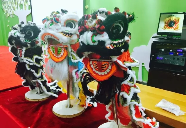 以红黑为底色的关公狮,以彩色为底色的刘备狮,以黑白为底色的张飞狮。一个个迷你型狮头摆放在桌面上,吸引着同学们的眼光。看到狮头,想起了过年时大街上喧嚣的锣鼓声,和舞狮那傲气的舞动姿态,浮现在脑海。