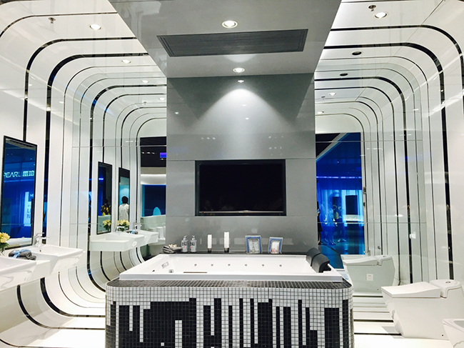 丽珀卫浴营销中心总经理高颂总经理亲自为我们演示了畅想未来的丽珀智能卫浴系列。各式各样的样板间让我们领略到了各种的时代风情:欧式的典雅,现代的简约,古风的富贵,田园的慵懒,印象派的创意,史密斯夫妇式的俏皮等等。