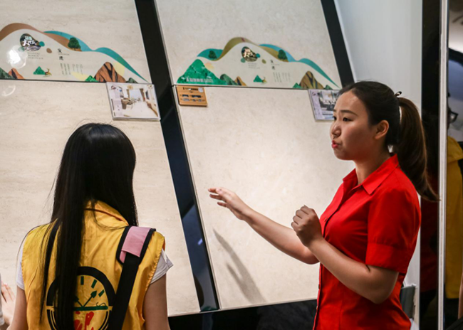 在萨米特陶瓷展厅,为了让我们更深入地了解新明珠陶瓷有限公司,展示人员给我们播放了宣传片。通过看短片进行有奖问答这种方式,我们对新明珠有了进一步了解。