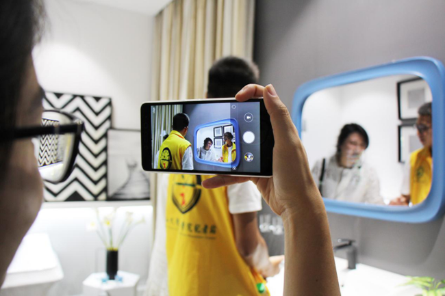 走进丽珀卫浴同学们体验了里面的智能化产品