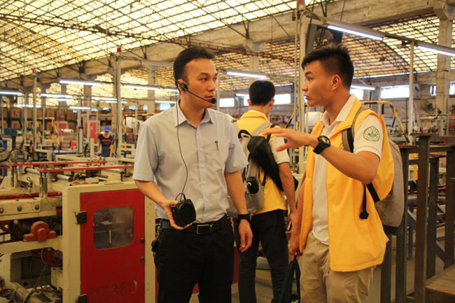 在自动化打包车间,车间主任冼主任为我们答疑解惑