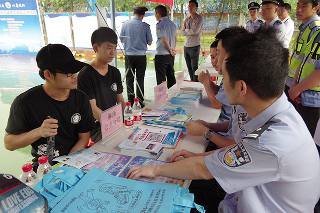 在回答同学现场提出的问题时,东莞公安局的警官们分析了常见的网络诈骗招数,并从多个方面讲解如何有效防范网络诈骗,提醒广大学生要保护好自己的个人信息,防止上当受骗。