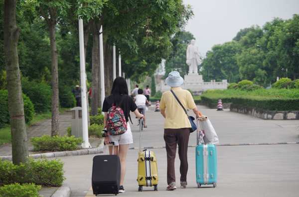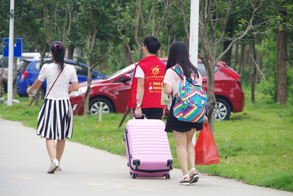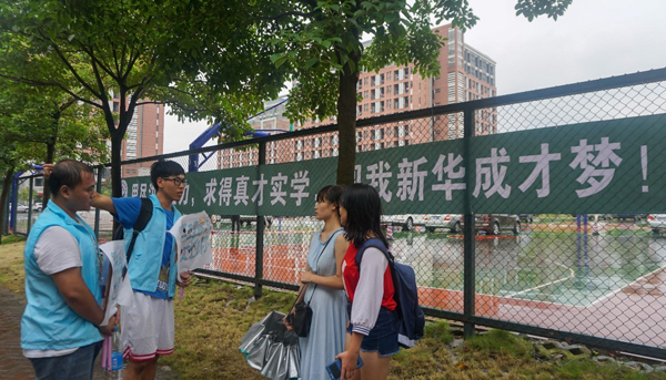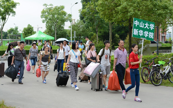 “中山大学新华学院的学生和家长们,请往这边走。”