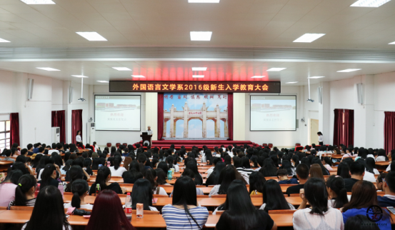 9月14日,外国语言文学系2016级新生入学教育大会在学院东莞校区召开。学院院长王庭槐亲临出席并致辞,欢迎2016级495名新生加入外语系大家庭。