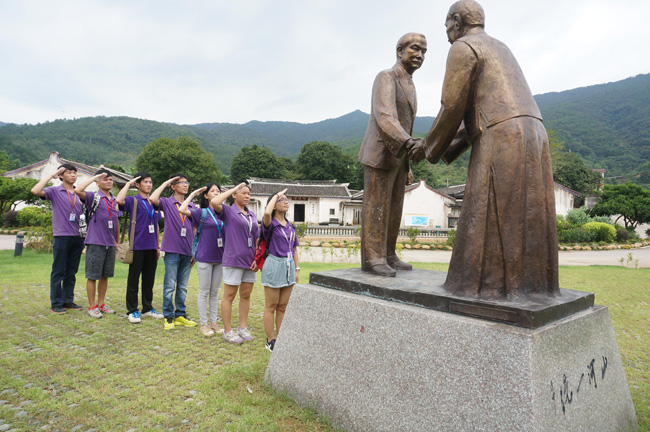 缅怀革命先烈,传承革命精神,实践队队员向丘逢甲先生敬礼。
