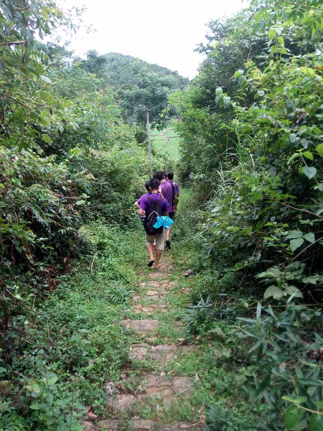爬荒山,踏泥路,漫长艰辛的“红军路”长满了野草,雨后又湿又滑。
