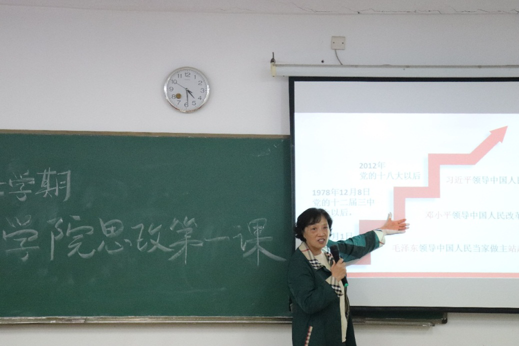 会计学院党总支书记张丽拉教授以《走进新时代,立志新华园》为主题为学院师生讲授新学期思政第一课。课程以“新时代的年轻人的责任是什么?”“大学生们应如何把学习和志向与时代结合起来?”两个问题为切入点,带领同学们重温中华民族从站起来、富起来到强起来的伟大飞跃的历史过程,并向同学们全面深入地阐述了习近平总书记关于“中国梦”的重要论述,希望同学们能够继承前人为国奋斗的精神,将自己的梦想与志向立足于“中国梦”之上,做一个有担当、有理想、有作为的新时代青年。