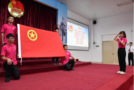 校团委学生副书记蔡娇同学带领全体团学干部重温入团誓词。铿锵有力的誓词回荡在会场,激发校团委全体成员不忘初心、牢记使命、履行义务的决心,使与会人员更加深刻地认识到作为一名团学干部承担的历史使命和责任。