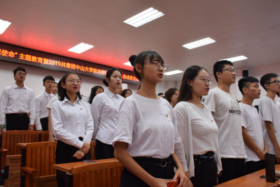 校团委学生副书记蔡娇同学带领全体团学干部重温入团誓词