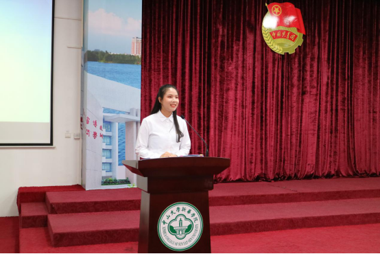 新生代表叶珏颖同学发言。她首先表达了对加入校团委大家庭的喜悦。“一份选择,便是一份责任。”她表示,作为校团委储备干部,将时刻不忘加入校团委的初心,做好团员和青年的表率,刻苦学习、勤奋工作、勇于创造、自觉奉献,努力提升自我,做出实绩。