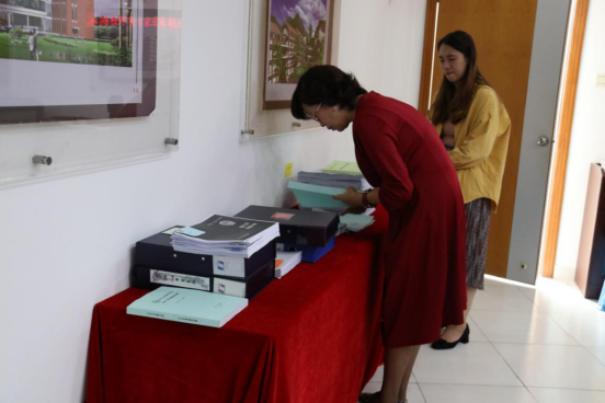 专家组成员实地查阅我校2018年度年检工作材料