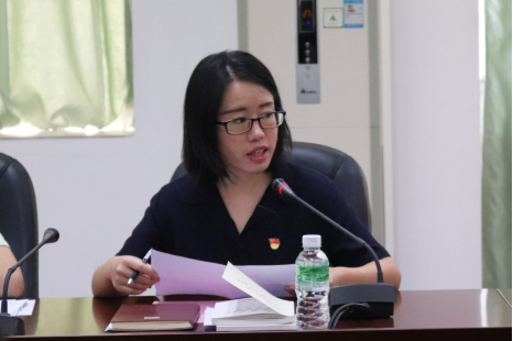 紧接着,公共治理学院党总支副书记刘艳芬解读了公共治理学院党总支“不忘初心、牢记使命”主题教育学习方案,方案总共分为学习教育、调查研究、检视问题和整改落实四个阶段,刘艳芬副书记就这四个阶段的的内容、时间和安排进行详细地解读。
