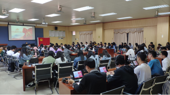 为深入学习贯彻党的十九届四中全会精神,切实把思想和行动统一到学习贯彻全会精神上来;把智慧和力量凝聚到落实全会确定的各项任务上来;把学习成效体现到增强党性、提高能力、改进作风、推动工作上来,11月14日下午,外国语学院学生党支部在我校东莞校区集中召开支部会议,传达学习第十九届四中全会精神。本次会议由学生党支部书记马丽老师主持。会议共分三项议程:阅读第十九届四中全会学习资料电子书,集体观看第十九届四中全会精神的相关视频和学生党员分享学习会议精神的心得体会。
