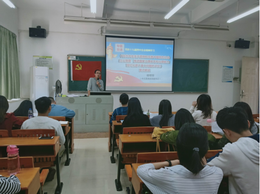 冬阳暖暖,寒梅独开。11月20日下午,中文系学生党支部在东莞校区定静楼开展了学习贯彻党的十九届四中全会精神专题党课,此次专题党课由中文系党总支副书记杨帮琰讲授。