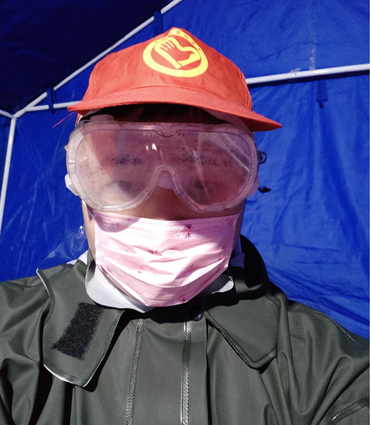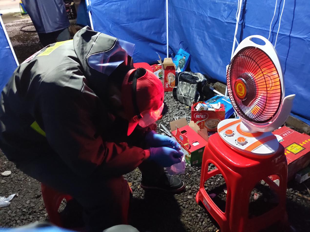 当晚11点多,气温骤降。交接前,我们先吃了一桶泡面暖了暖身子,穿戴好红马甲、口罩和护目镜后,我们正式上岗了。严寒风雨中,鲜艳的党旗和团旗在风中猎猎作响,我们毫无畏惧,直面风雨,坚守岗位,一件件红色的马甲像是冬夜里的一团团火把,一颗颗被党团组织鼓舞起来的年轻赤诚的心,彰显出防止疫情输入的责任与担当。