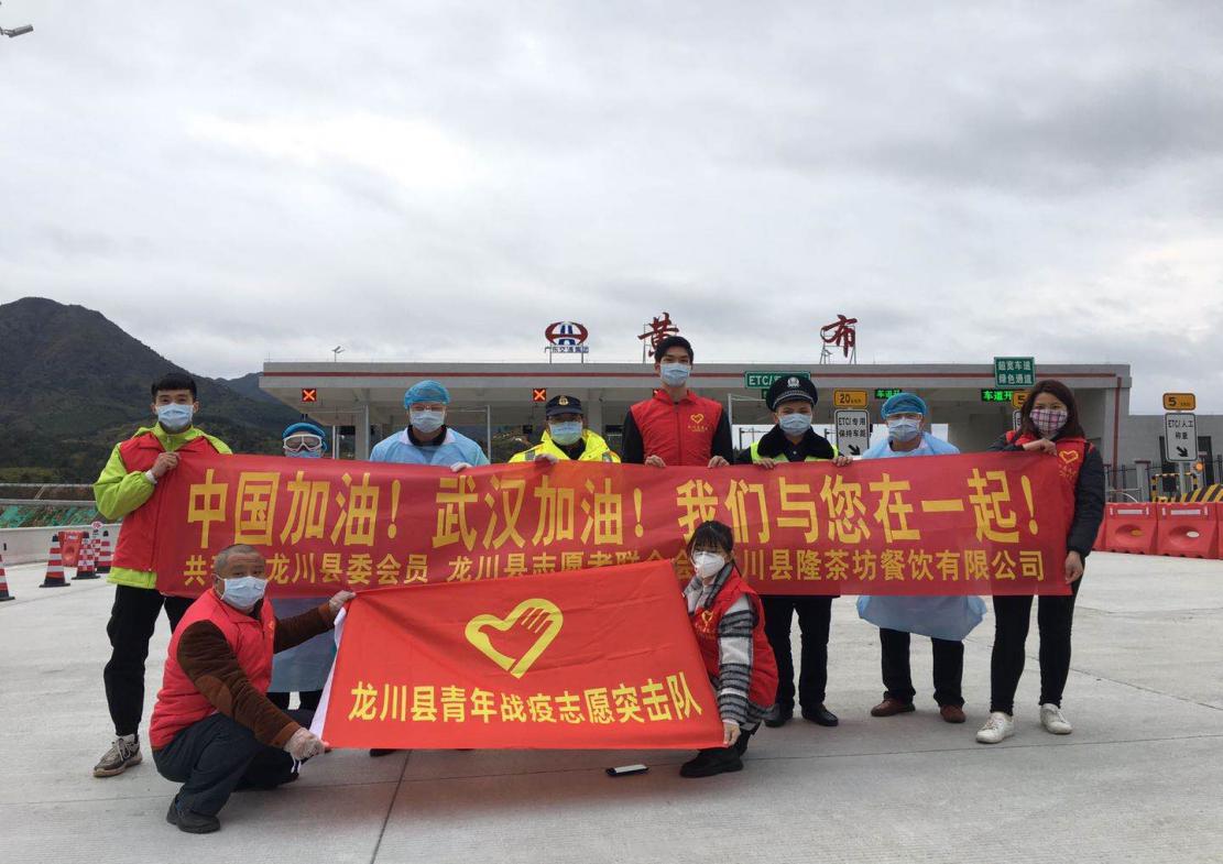陈美玲同志(一排右)在黄布高速路口与志愿者们一起合影