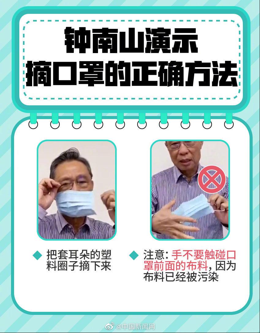 钟南山演示摘口罩的正确方法(图片来源于中国新闻网)
