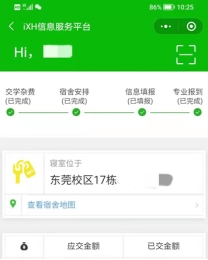 新生通过“iXH”小程序“迎新服务”功能即可查询入学手续的办理进度,查询宿舍安排和各校区地图,便对报到路线“心中有数”。结合疫情防控要求,新生需进行来校报到前14天的“报平安”打卡,使学校提前掌握学生的健康状况。