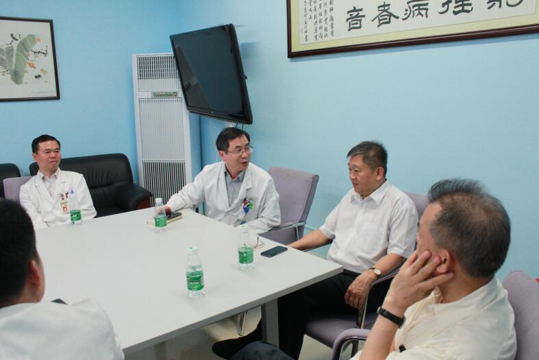 王庭槐校长向中山大学肿瘤防治中心放疗科主任夏云飞教授了解我院临床实践基地教学情况