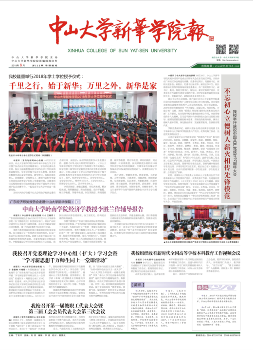 校报以“坚持导向、促进开放、扩大影响,强化共识、完善制度、创新模式”为办报思路,围绕学校中心工作,全方位、全过程地服务人才培养,宣传教学科研、管理服务的教育动态和师生典型,把握舆论导向,强化服务育人功能,为学校发展作出了积极贡献,受师生、领导、老教授好评。2016年,中山大学新华学院学院办公室(党委办公室)主任、校报主编丁艮平同志被授予广东高校校报“突出贡献奖”。