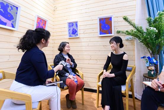 孙洪敏女士(中)与刘婉莉女士(右)谈美育