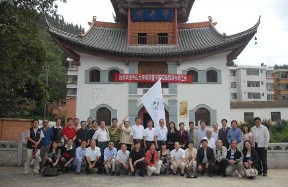 访问团、澄江县领导、云南省中大校友代表在层青阁前合影