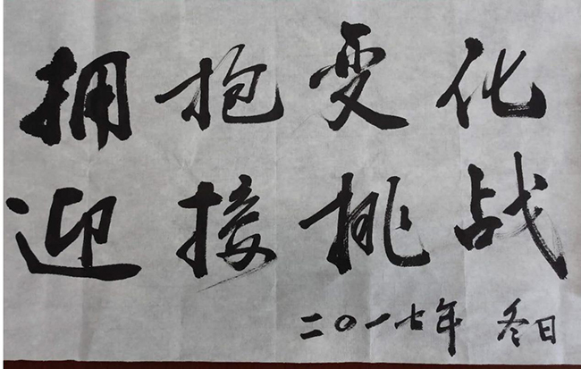 王庭槐校长为交流会题字:拥抱变化,迎接挑战