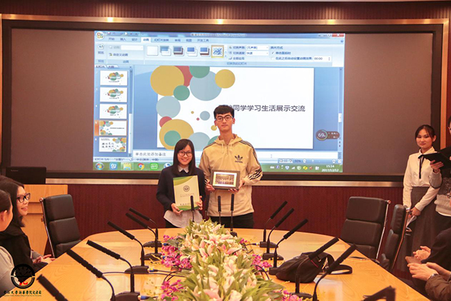 两校学生交换纪念品