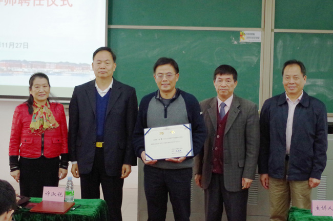 许淑锐副院长(左二)为刘勇先生(中)颁发校外导师聘书