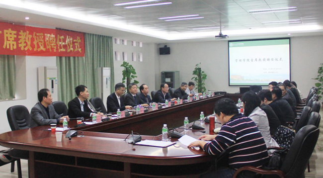 王庭槐校长为李仲飞教授颁发聘书并致辞。他表示,李仲飞教授受聘为管理学院首席教授于我校的发展具有重要意义,新华学院未来的发展非常需要李教授这样的杰出学者,对学校学科专业的发展、对老师的教学科研发展、对学生的学业进步进行指导和帮助。王庭槐指出,大学教育的意义在于为社会培养适应经济社会发展需求的人才,为学生的成长成才奠定良好基础,将科技文化知识一代一代传承下去,希望李教授的加盟能够进一步促进管理学院的科研和教学工作的长足发展。