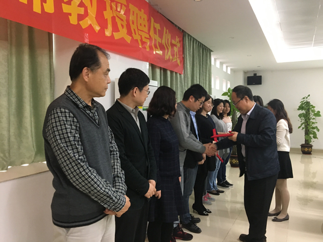 王庭槐校长(左)为李仲飞教授(右)颁发聘书 蔡曦晴摄