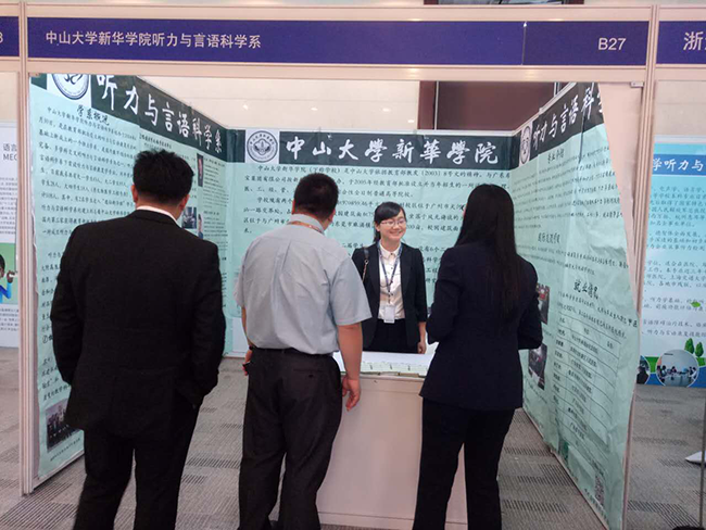 5月26日至28日,2017北京国际听力学大会在北京国际会议中心召开,我校听力与言语科学系应邀参展本届会议。大会以“新技术、新产品、新服务”为主题,旨在搭建听力学领域的国际交流平台,促进中国听力学的发展与繁荣,推动听力行业的规范化与健康成长。会议特邀国内外知名听力学家共同探讨听力学行业相关议题。中山大学新华学院作为华南地区第一所开办听力与言语科学本科教育的高校,受邀与英国南安普顿大学听力学系、浙江中医药大学医学技术学院、北京语言大学语言康复学院、滨州医学院特殊教育学院共同参展。