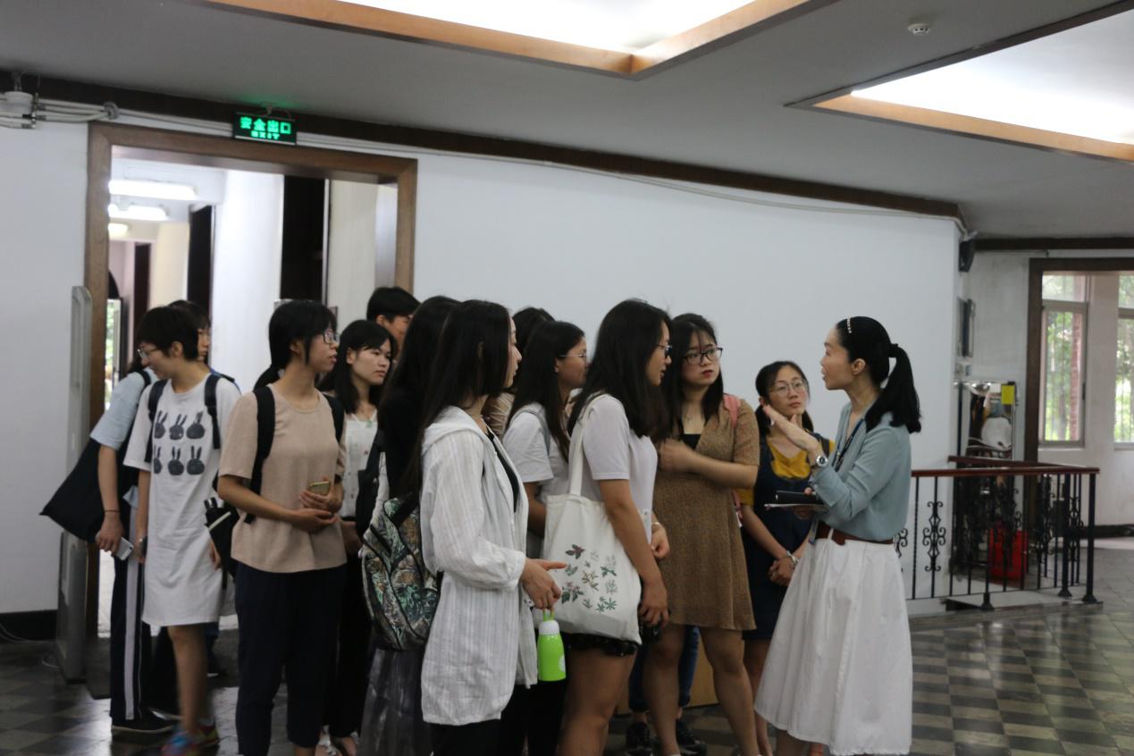 中山大学医学图书馆李文红老师(右一)给同学们介绍该馆情况