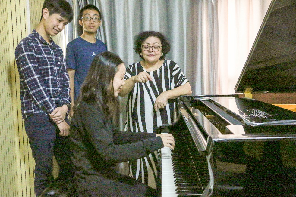 Inoyatova Gulchekhra教授指导学生弹奏钢琴